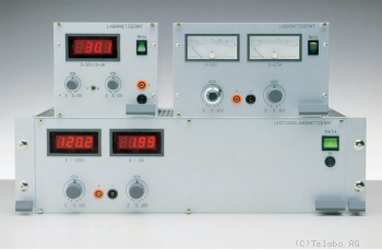 Bei Labornetzgeräten ist der Leistungs-/Grössenvergleich ähnlich dem der Festspannungen, jedoch wird bei kleinen Leistungen die Gehäusegrösse durch die Anzeigeinstrumente vorgegeben.